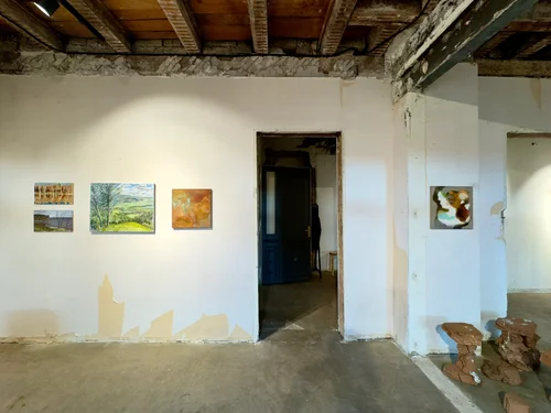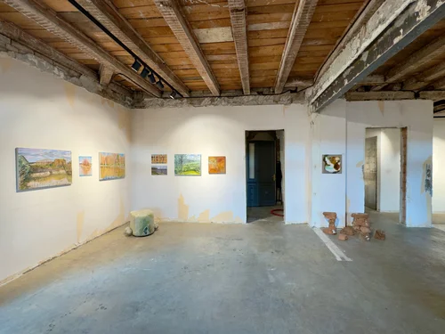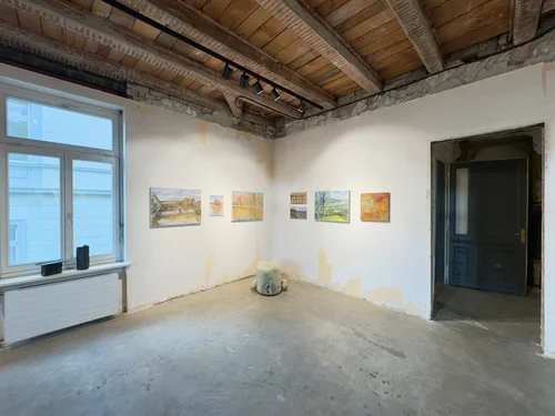 Land Escapes brings together five young Swedish artists whose practices explore shifting ideas of landscape, spatiality, and identity. Through painting, sculpture, installation, and moving image, the exhibition reflects on how environments, both physical and imagined, are constructed, experienced, and remembered.