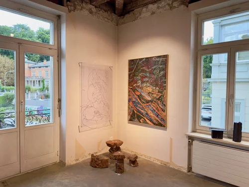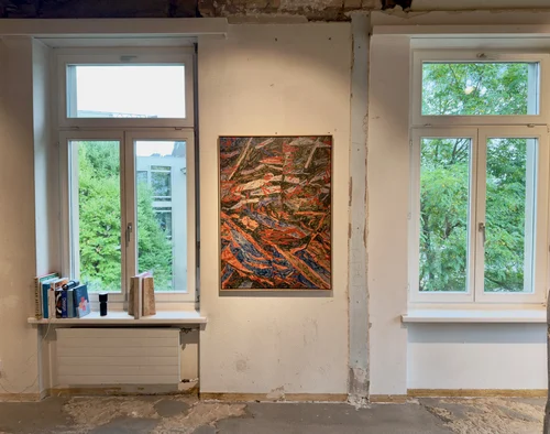 Fredrik Åkum’s (b. 1987) practice revolves around processes of repetition and displacement, where each layer and reproduction push the image further from its point of origin. Åkum contributes a series of paintings in which rhythm and surface engage with abstraction while anchoring the viewer in a more intimate sense of space.
